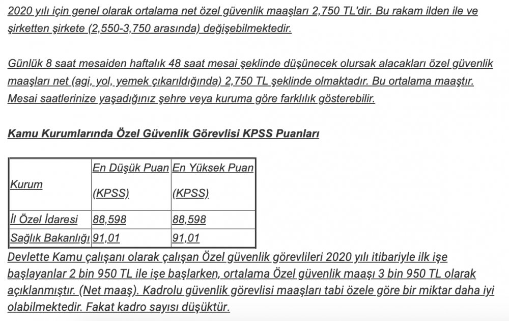 Özel sektörde görev alan özel güvenlik görevlilerin özel banka, üniversite vb şirketlerde aldıkları maaşları araştırdık. Kamuda ve özel sektörde kurum ve kuruluşların emniyetinden sorumlu özel güvenlik görevlileri bu görevi üstlenmek için belirli aşamalardan geçmektedir.