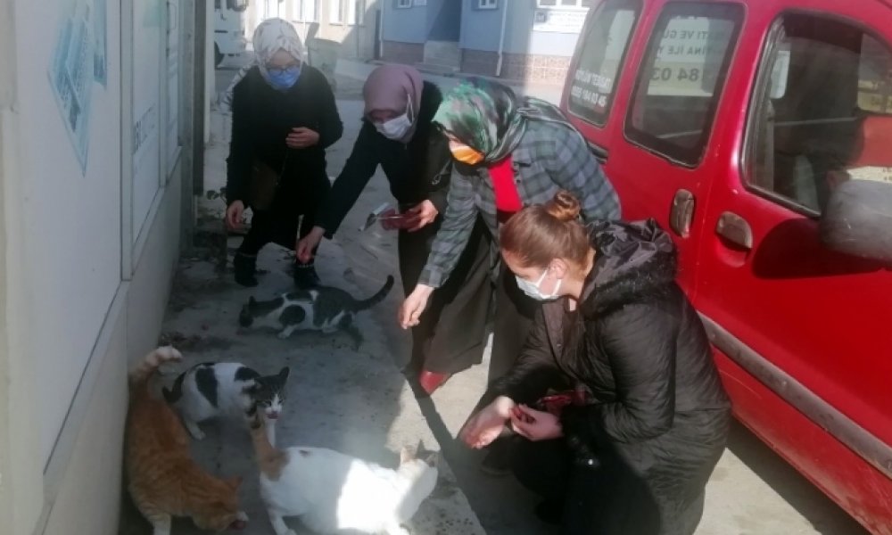 Bir kaç bölgede sokak hayvanlarını besleyen AK Parti Yenişehir Kadın Kolları, bu davranışları nedeniyle vatandaşlardan takdir topladı.